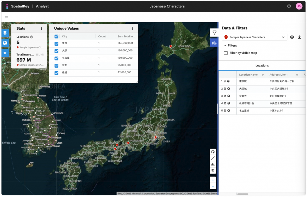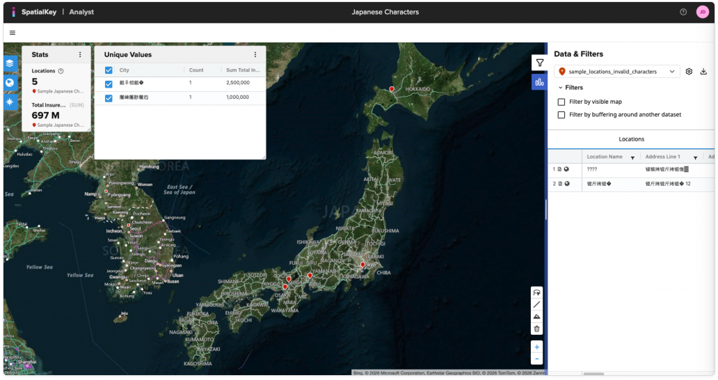 SpatialKey supports a wide range of languages and characters in datasets uploaded as CSV files. In most cases if the data looks right on your computer before uploading, it will appear correctly in SpatialKey. However, this doesn’t always produce perfect results. There are some manual steps you can take to ensure the best support for the full range of characters in your data.