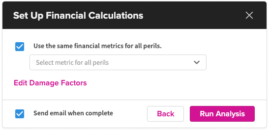 Damage Factors come into play in the Set Up Financial Calculations step of running an Event Response analysis. At this stage, users: