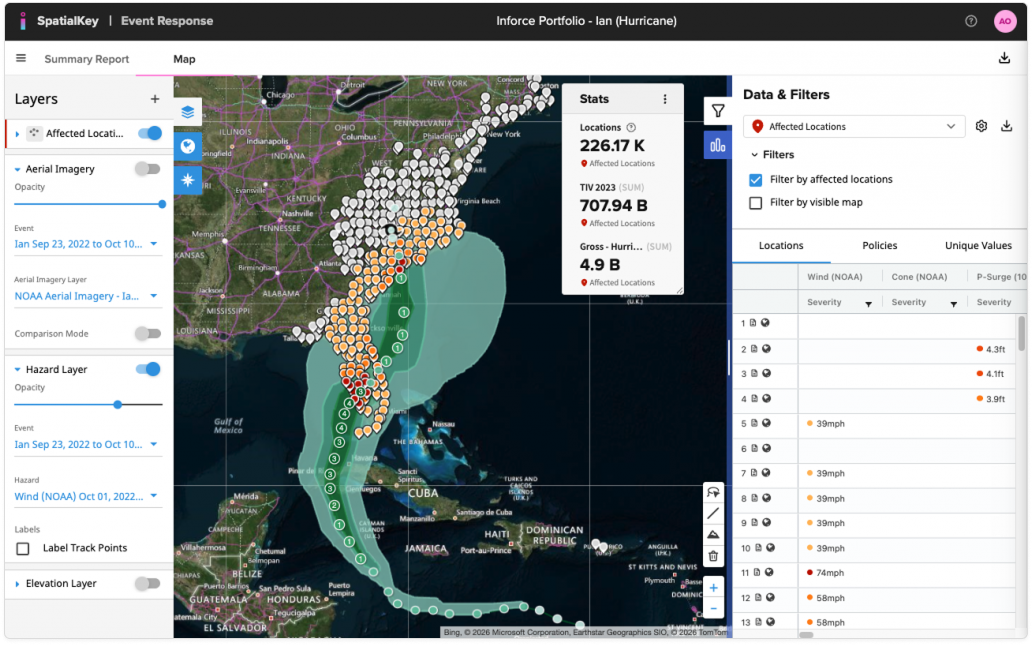- The ability to change the hazard layer visualized on the map (when visualizing NOAA Hurricane, there is also an option to Label Track Points on the map)