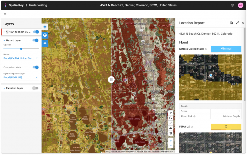 - Enable comparison mode to visualize two different hazard layers side-by-side, helping you compare two different models or points in time in the same view
