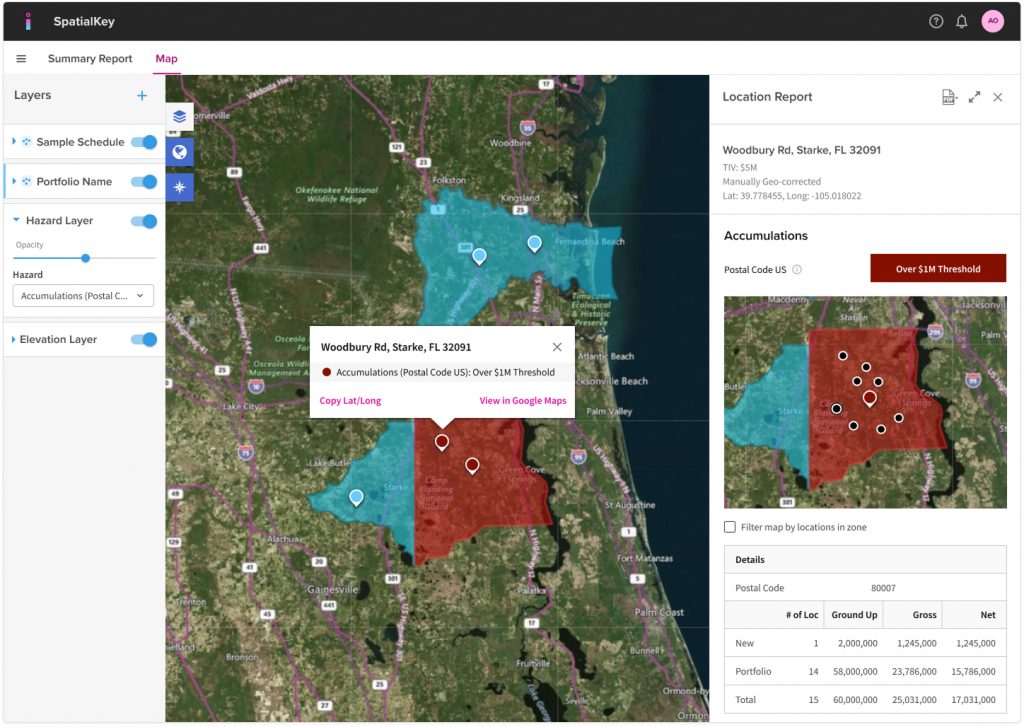 The Over/Under threshold assessment is based on the financial model’s calculated Gross or Net exposure. Learn more about SpatialKey’s financial model.
