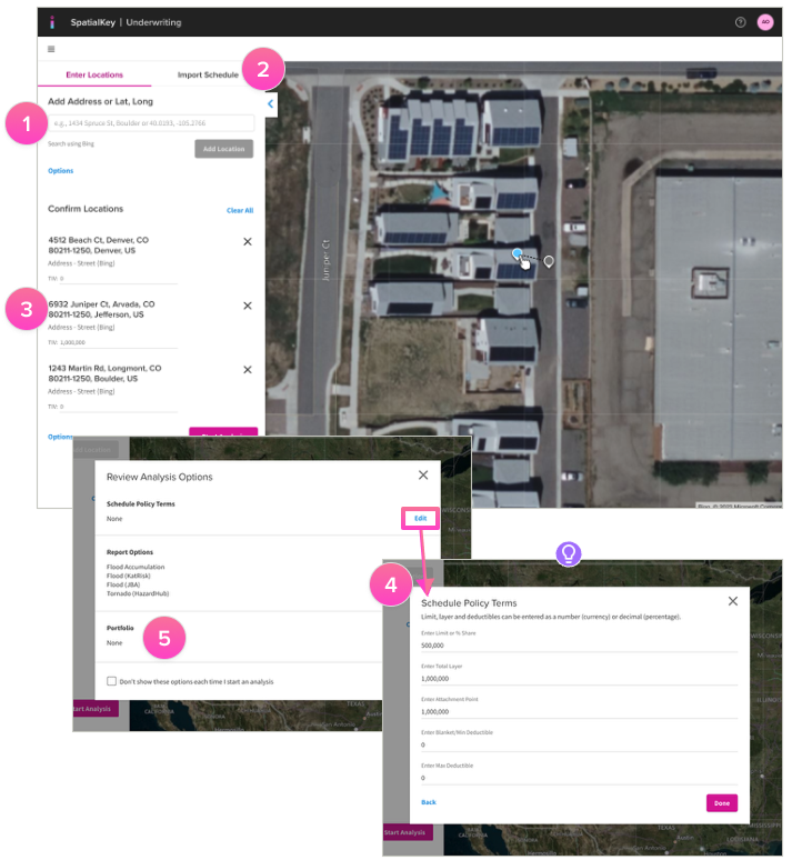 3. Optional: Enter insured values (TIV) for the data you want to analyze. When uploading a schedule, you will be able to select a column that represents insured value.